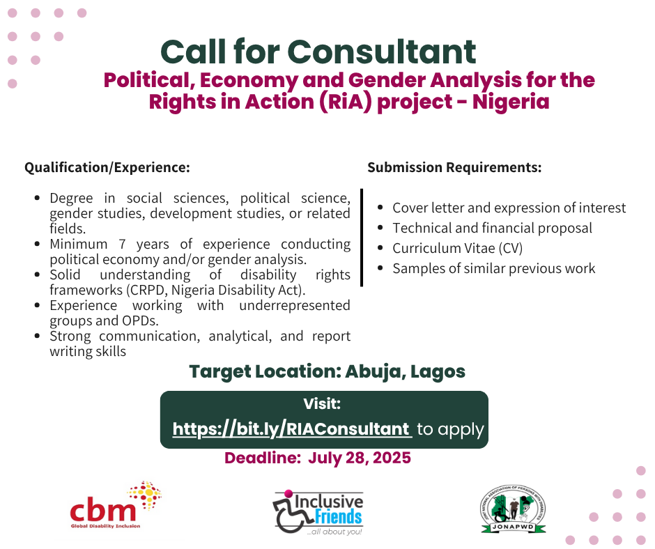 Inclusive Friends Association (IFA) is a Person with Disability (PWD) woman-led non-profit and non-governmental organization that employs data to address the inclusion and participation challenges of over 30 million PWDs in Nigeria through advocacy, training, and research
